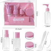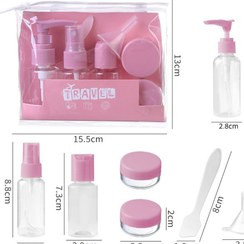 این ست مسافرتی برای کسانی که همیشه توی سفر یا رفتوآمد هستن خیلی کاربردیه. توش بطریهای کوچک اسپری، پمپ، کرمدان و قاشقک داره که میشه راحت مایعات، شامپو، نرمکننده، کرم یا لوسیون رو داخلش ریخت و بدون نگرانی از جاگیر بودن بستهبندی اصلی همراه داشت. داشتنش باعث میشه همیشه شیک و مرتب به نظر بیای