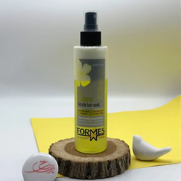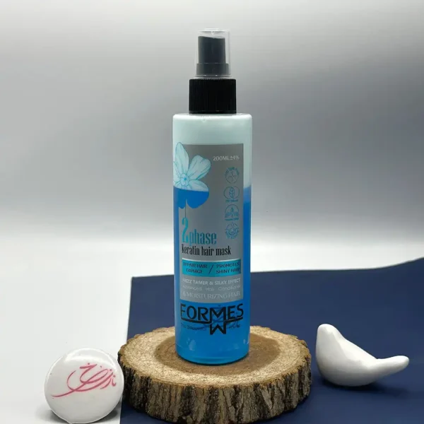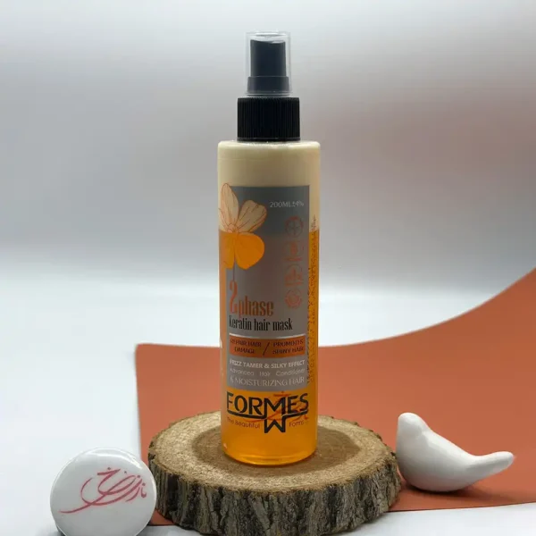 اسپری دوفاز حجم ۲۰۰ میل برندفورمس سبز موی آسیب دیده وکراتین ابی ضدموخوره وحاوی کراتین زرد ترمیم کننده وحاوی کراتین نارنجی تثبیت کننده رنگ مو حاوی کراتین
