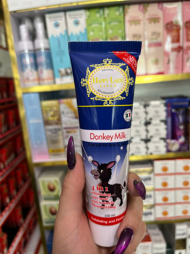 نمک صورت بدن شیر الاغ مدل تیوپی برند هپی لیدی حجم۱۰۰ میل