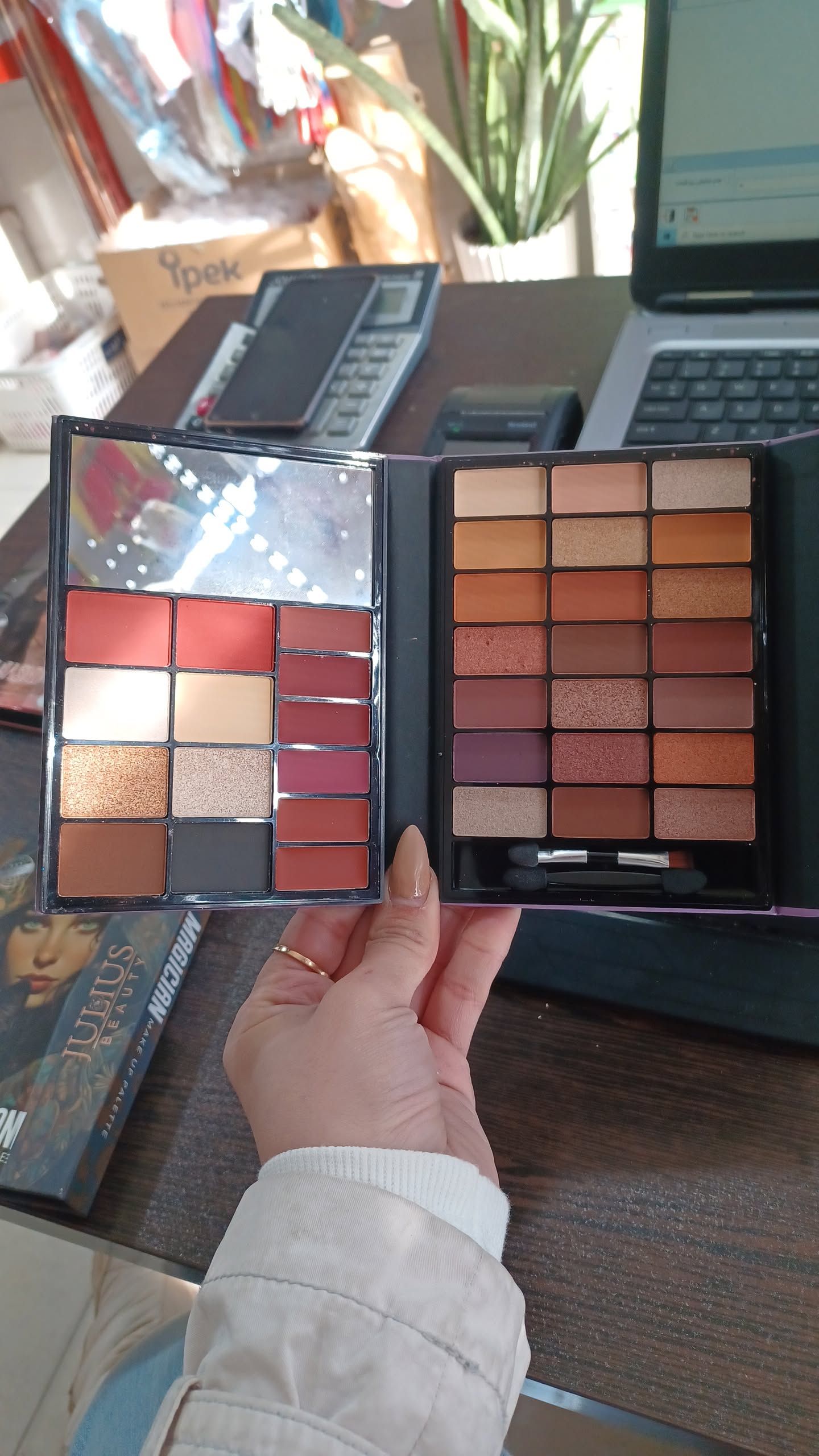 سایه کتابی برند ژولیوس پیگمنت بالا سایه شاین ومات هایلایترکاربردی رژ جذاب رژگونه مخملی سایه ابرو مناسب هرسلیقه دارای براش واینه سایز بزرگ