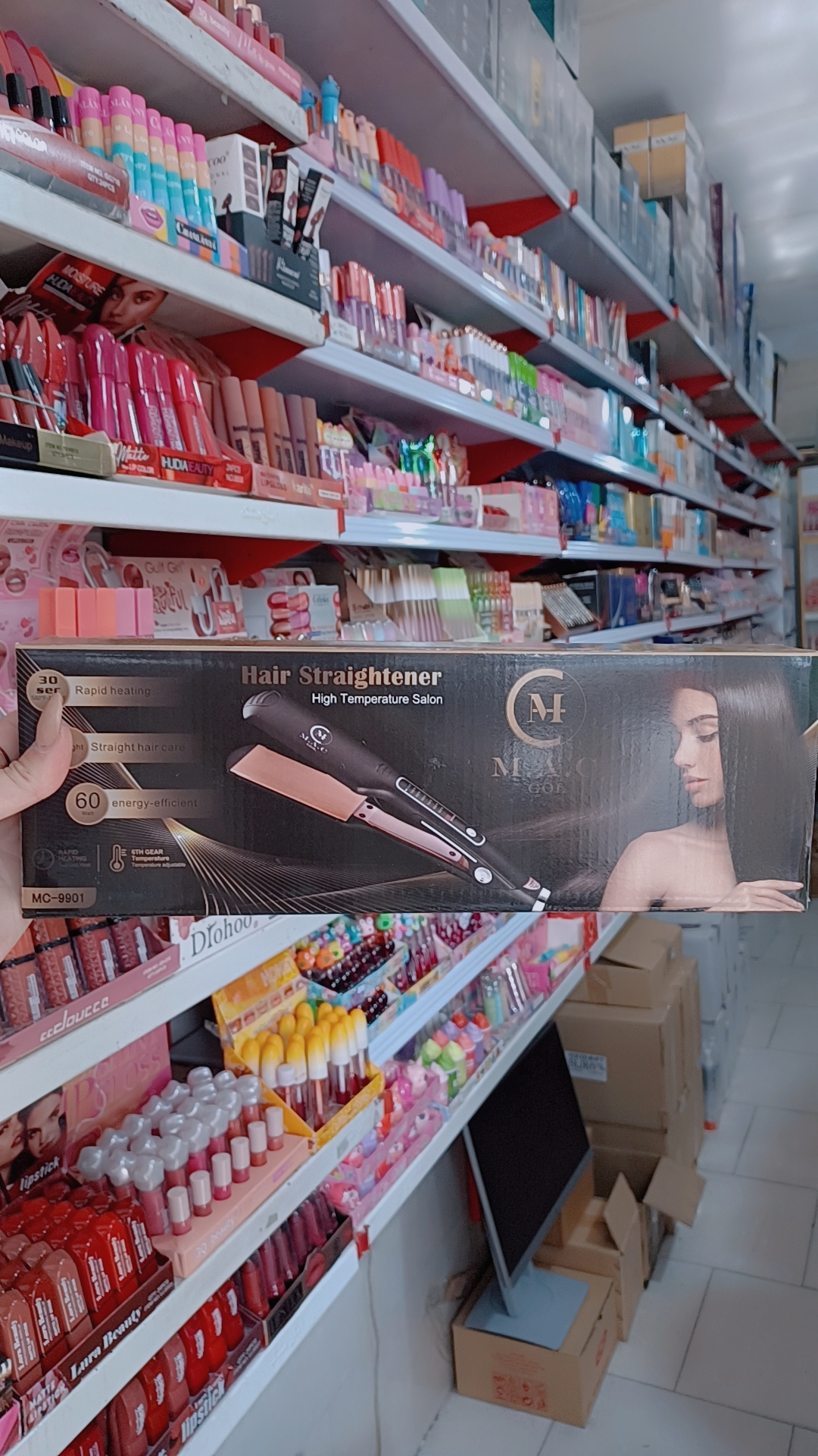اتومو برند مک مدلmc9901 صفحه سرامیکی گرمایش سریع در۳۰ ثانیه مراقبت از موی صاف کم مصرف ۶۰ وات قابلیت تنظیم دما دکمه پاور تک رنگ مشکی مات صفحه رزگلد